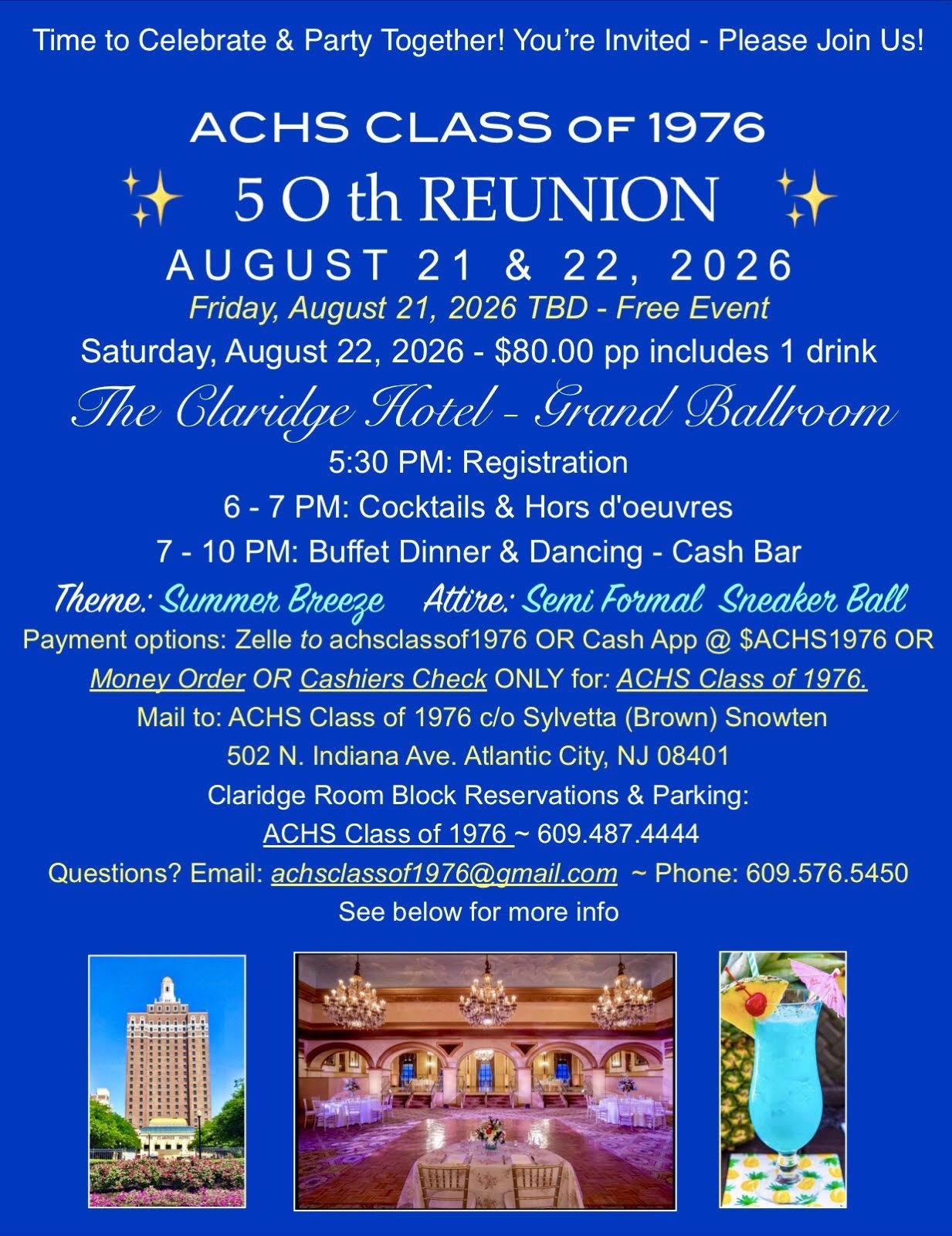 Mark your calendars! RSVP to achsclassof1976@gmail.com
